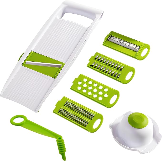 Easy to clean and store: Residual blades can be easily washed off with tap water in seconds. The vegetable hobel can be completely disassembled for easy cleaning and is dishwasher safe. In addition, the cucumber slicer makes thin discs itself clean and neat when cutting, grating and grating. You can insert all knives into the holder for easy storage.